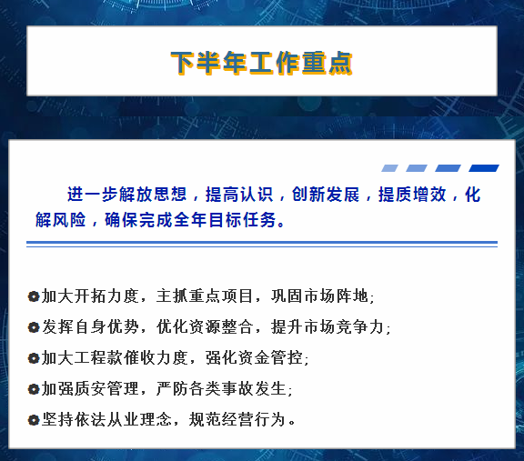 近日,我司召开了年中经营工作会议。会议总结了上半年度经营工作情况,分析了当前经济发展形势,进一步明确了下半年度工作重点。